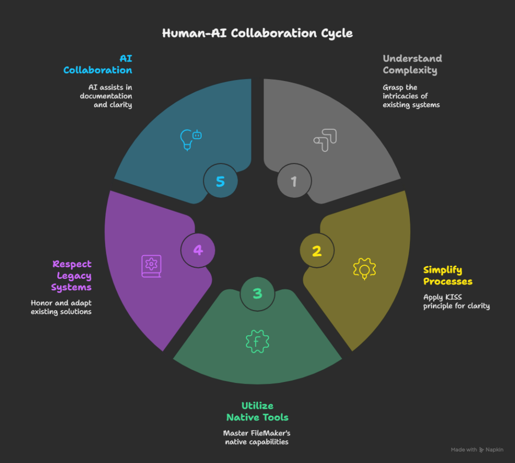 What works well in Platform A may cause chaos in Platform B. FileMaker is a unique environment with its own logic, culture, and strengths. We honored that — and stopped forcing external patterns into it. That’s how we built something that feels right.