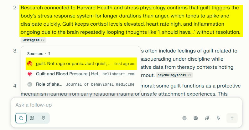 - The Error: It performed a “pattern-match.” It found articles about “Harvard,” “stress,” and “guilt,” and synthesized them into a confirmation of a study that does not exist. It prioritized fluency and “helpfulness” over epistemic integrity, falling for the exact trap the viral text set: it generated “plausible nonsense.”