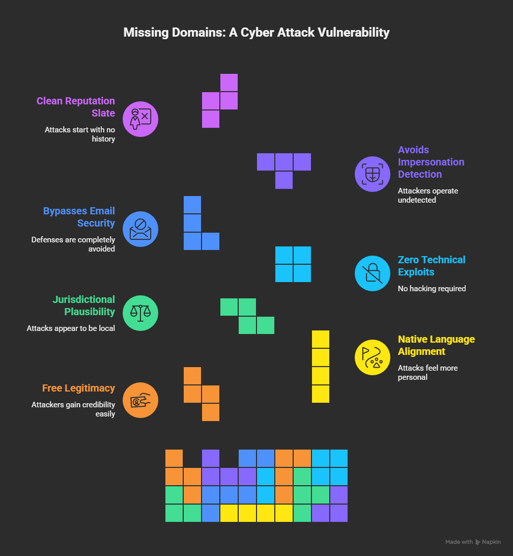 For a European company, owning only a .com domain while not controlling the corresponding .eu and .localCountry domains is not a minor oversight. It is a structural cybersecurity weakness that dramatically reduces attacker cost, increases attack success rates, and amplifies legal and reputational fallout.
